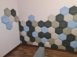 Объемные панели нестандартной формы, собранные в ритмичный контрастный паттерн, кардинально меняют восприятие пространства. Это смелое решение идеально для создания ультрасовременного дизайна и отличной акустики в просторных помещениях.