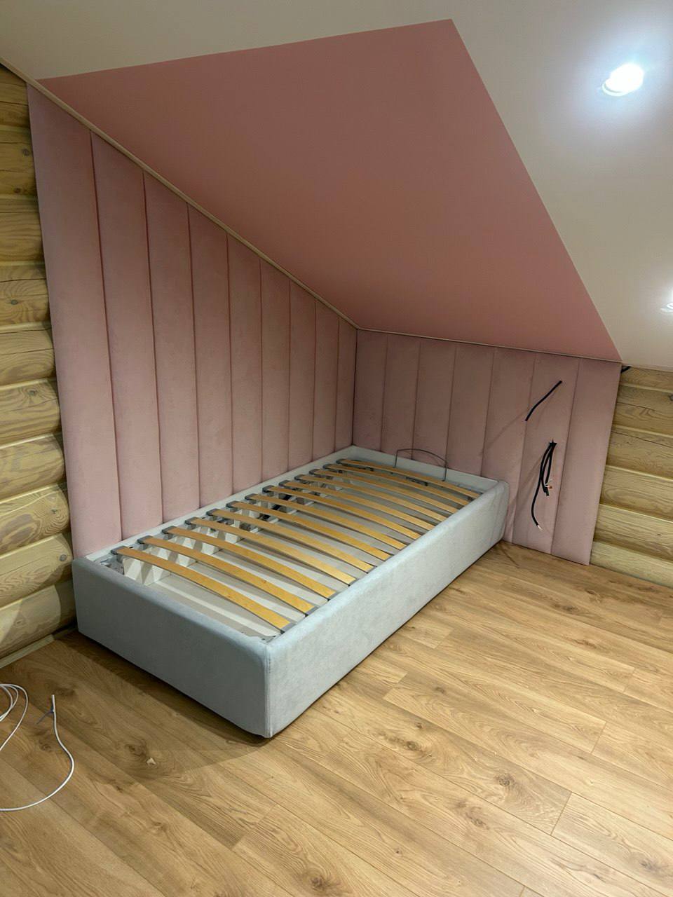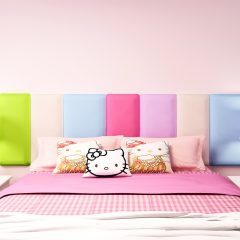 Нежные розовые панели идеально подойдут для девичьей спальни, заменяя жесткую спинку кроватки и выступая единой деталью, становясь с кроватью и матрасом одним целым.