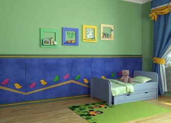 Подобные изогнутые панели, установленные от самого пола, помогают оформить любую область комнаты и добавить интересный акцент в обстановку. Они станут надежным средством защиты от ударов во время активных игр ребенка. Загрязнения можно убрать влажной тряпкой, без каких либо хим. средств.